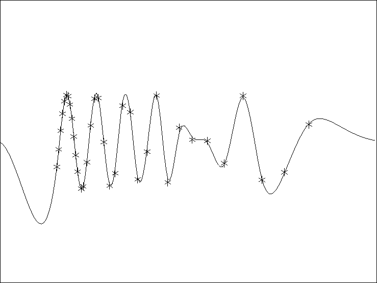 Figure 1 A simple linear interpolation result unsing the out-of-core library.The `*' are the known data and the line is the estimated curve. | ![]() |