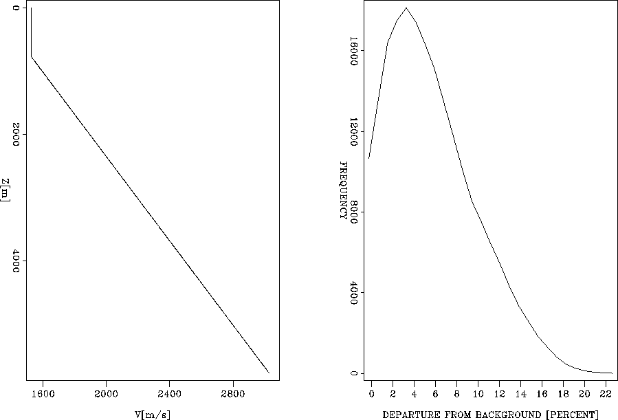 Figure 1 Left: Background velocity; Right: Histogram of velocity deviation from the background, in percentages, for a random number of samples in a certain region of the model. | ![]() |