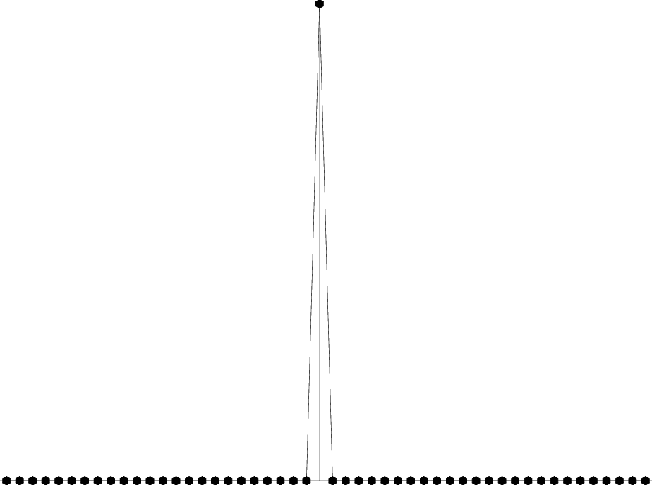 The first data example is the simplest mixed-phase wavelet, which only has three points [3,7,2]. We use it to verify the ability of our method to deal with the mixed-phase wavelet. The input data and its bidirectional result are shown in Figures 1 and 2. In this case, our new method is able to compress the simple mixed phase wavelet into a spike.