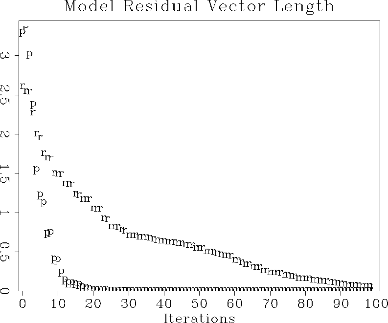 Figure 6 Convergence of the iterative optimization, measured in terms of the model residual. The ``p'' points stand for preconditioning; the ``r'' points, regularization. | ![]() |