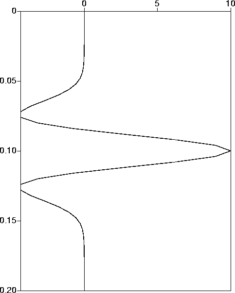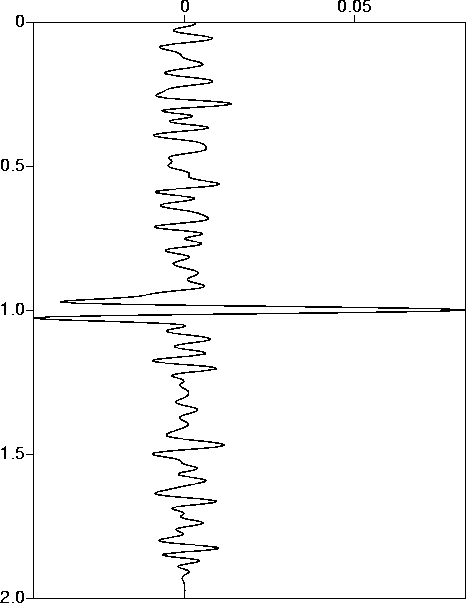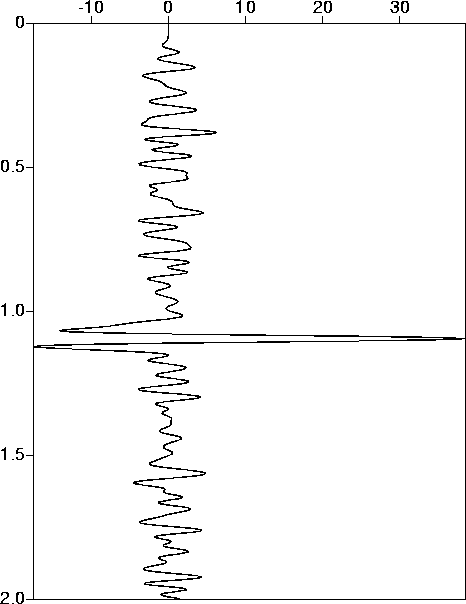 All of the examples in this section will concern the source pulse (w) depicted in Figure 1, which is a 15 Hz Ricker wavelet sampled at 4 ms.