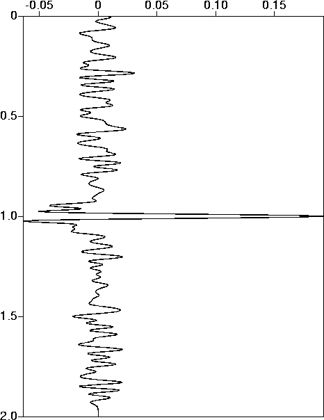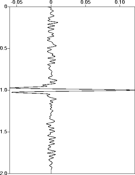 The data space consists of time series of length 1001, sample rate 4 ms. The noise free data is the convolution of the wavelet with a spike located at 1 s, see Figure 2.