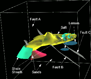 Figure 1 3-D representation of the SEG-EAGE salt model. | ![]() |