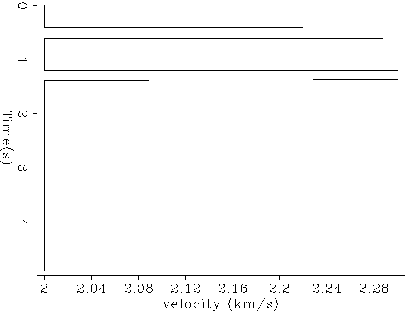 our initial slowness model, we constructed a simple 1-D synthetic.