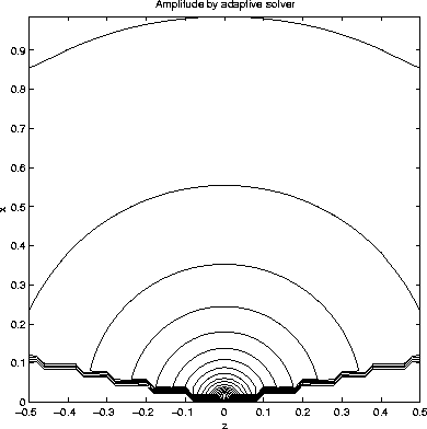 Figure 16 Amplitude for constant velocity model: adaptive grid | ![]() |