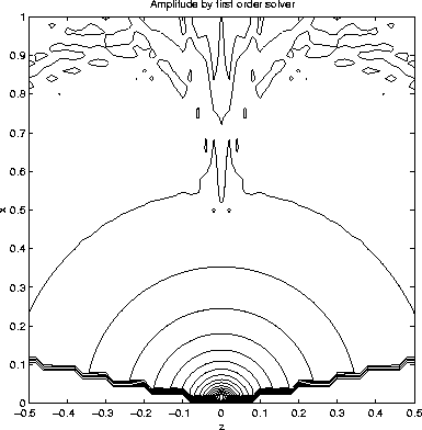 Figure 15 Amplitude for constant velocity model: fixed grid | ![]() |