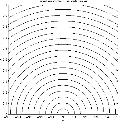Figure 1 Traveltime for constant velocity model: fixed grid | ![]() |