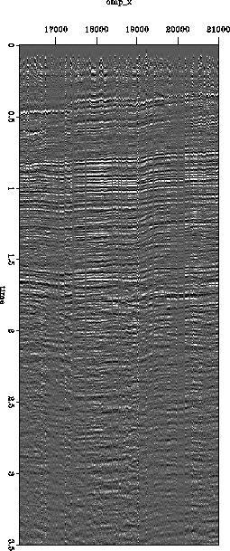 SEP passive dataset. Partial stack data corresponding to record number 46. Note the blast arrival around 9.7 seconds.
