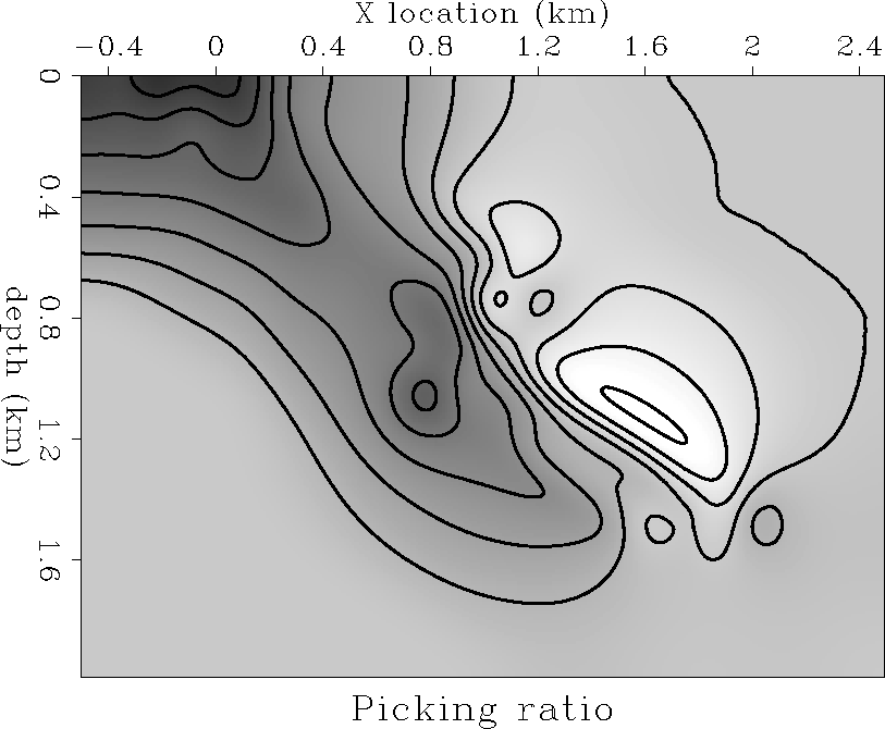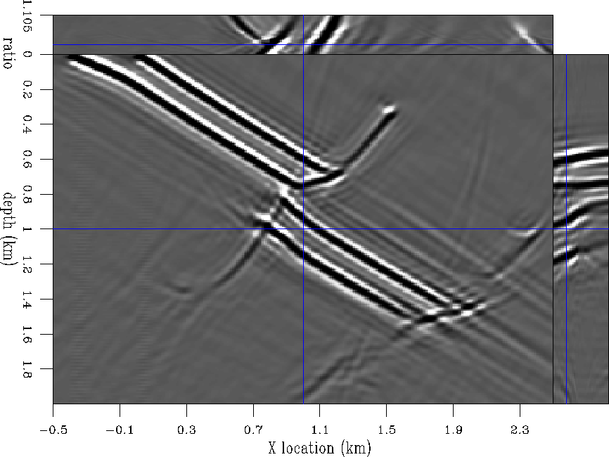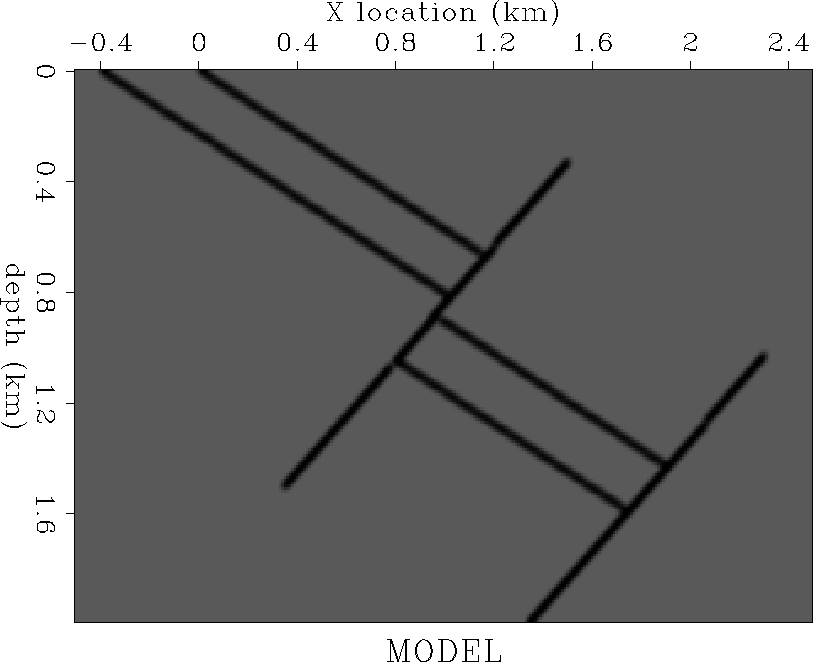 Such a model is especially relevant for regions with large velocity contrasts and steeply dipping boundaries, for example in the North Sea Vaillant and Sava (1999) or the Gulf of Mexico, around salt domes. Dipping events tend to move laterally at every offset when imaged with different velocities; therefore residual imaging processes that do not take into account this lateral movement, like residual move-out or warping Rickett and Lumley (1998), cannot fully correct the image, but can only increase the flatness of the CIGs. Although flat CIGs are a necessary condition for a correct image, they are not a sufficient one.