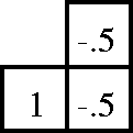 To do this it is important to remember that our regularization operator should have the inverse spectrum of the covariance matrix. Therefore if the covariance function is primarily a dipping event, our regularization operator should be destroying that dip. Claerbout showed how to estimate the primary dip in a region and how to construct a filter that could destroy that dip. These small filters, which I refer to as steering filters can be as simple as a two or three point filter, Figure 4. A steering filter consists of a fixed `1' and one or more coefficients in the next column. The location of the filter coefficients in the second column determines the dip that the filter will destroy. Figure 5 is the inverse impulse response of Figure 4. Note how the general orientation of the impulse response is approximately the same as the covariance function below the lower unconformity.