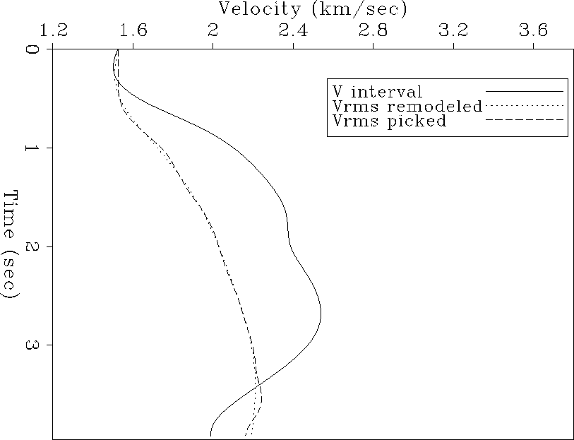 obtained with the inversion method, the picked RMS velocity and the