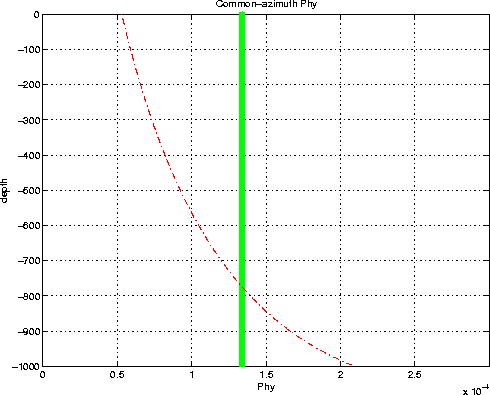 Figure 6 Comparison of the exact cross-line offset ray parameter phy (thick solid line) and of the approximated phy (dashed curve) calculated with CAM stationary-phase approximation, in the case of a reflector dipping at about | ![]() |