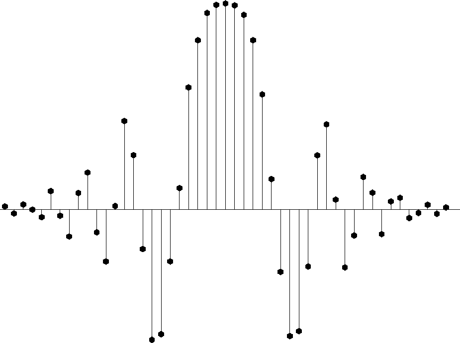 For a simple 1-D test, I chose the function shown in Figure [*], but sampled at irregular locations. To create two different regimes for the inverse interpolation problem, I chose 50 and 500 random locations. The two sets of points were interpolated to 500 and 50 regular samples respectively. The first test corresponds to an under-determined situation, while the second test is clearly over-determined. Figures [*] and [*] show the input data for the two test after normalized binning to the selected regular bins.