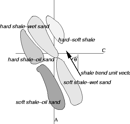 With the insight gained from the definitions of A and C, we can now intuitively understand that trends in this AVA plane are due to the variation of real rock properties. Figure 1 indicates the relative position of simple targets in this space. Because I have defined density and velocity as the properties of the lower layer, the negative values of A show a change from harder to softer intervals and the opposite is true for the positive values. Therefore we can understand something of the nature of the bounding layers of an interval as harder bounding lithologies will trend to more negative values of A.