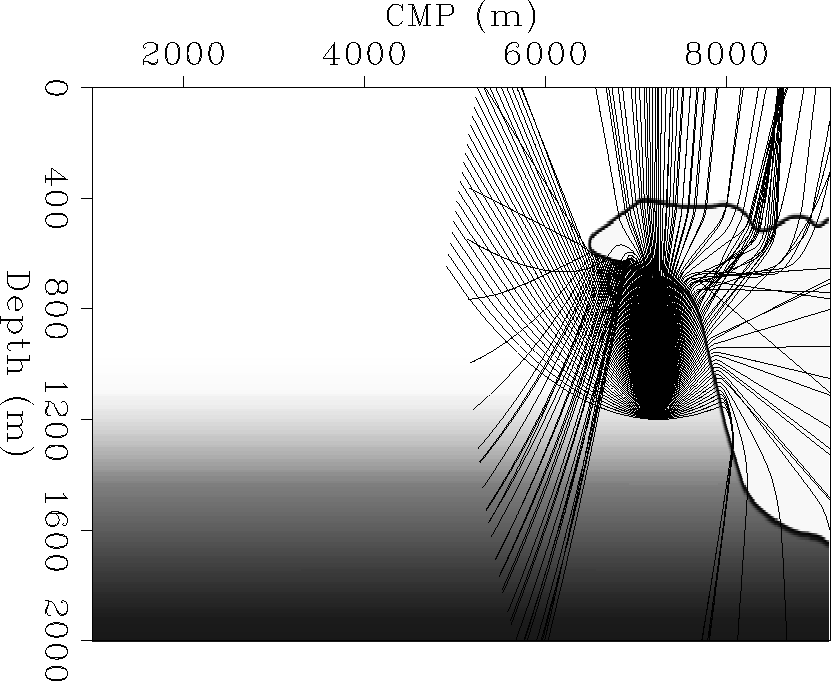 Figure 1 Main problem: Two different groups of rays, group A doesn't go through the salt body; group B goes through the salt body. | ![]() |