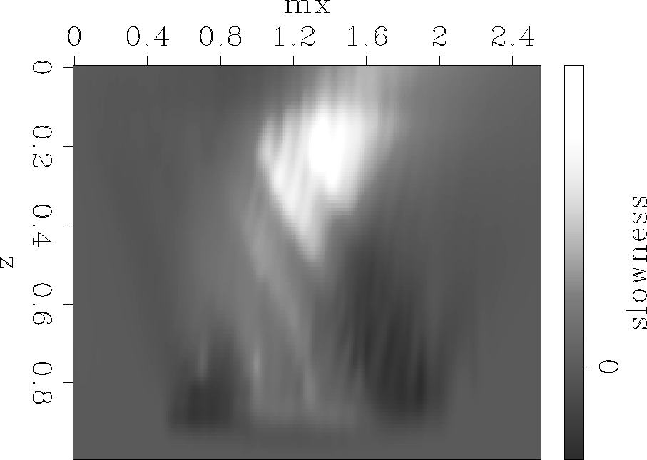 Figure 11 Slowness inversion obtained from the analytical image perturbation using the WEMVA operator. | ![]() |