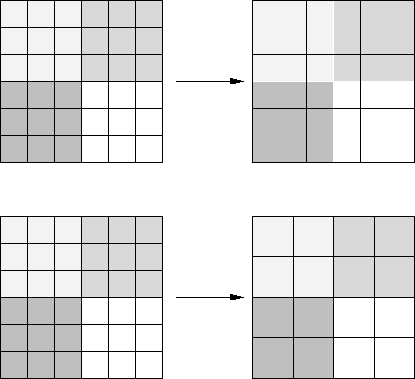 Figure 1 Plot of data space (grid) with the non-stationary PEF micropatches (overlay). Above: the rescaling doesn't cleanly re-sample the PEF, so the filter coefficients could be in different places depending on the scale. Below: The appropriate choice of scale maintains both the aspect ratio of the data and of the PEF. | ![]() |