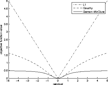 , Cauchy Claerbout (1999), and Geman-McClure functions is shown in Figure