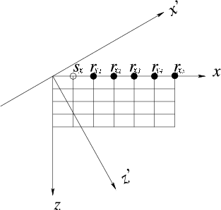 Figure 2. Source and receivers in grids of a tilted coordinate