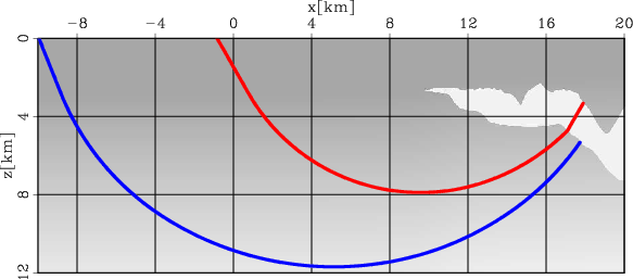 The rays correspond to the overturned waves from the overhanging flanks on opposite sides of the salt. Figure 4 shows the model