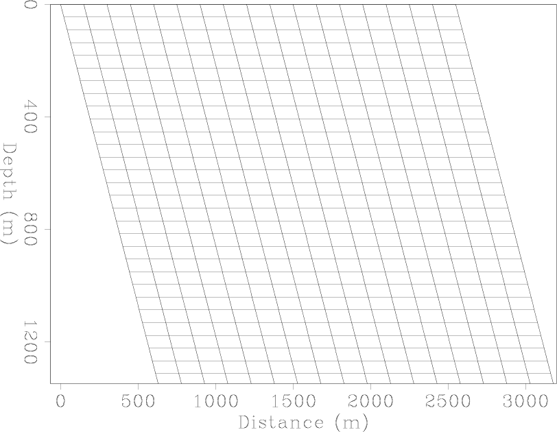 Figure 2. Example of a sheared Cartesian coordinate system with a shear angle of 25 |