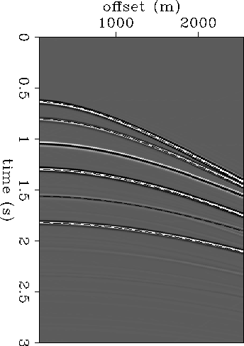 Figure 3 Synthetic data overlaid with automatically-picked reflection events. | ![]() |