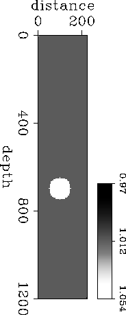 Figure 7 Isotropic slowness model. The radius of the circular anomaly is r=50 and is centered at (100,700). The background slowness is 1.0 and the slowness of the disc is 1.05. | ![]() |