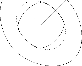 Figure 2 Impulse-response curves showing the shapes of wavefronts propagating in the medium used in our numerical models: qP (outer curve), qSV (inner solid curve), and SH (dotted). The | ![]() |