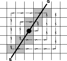 By sorting the data into classes of offset, we can restrict the size of the spiral to the maximum offset of each class. The spiral data movement allows any azimuth distribution of the input traces. However, because a trace contributes to the stack only along its original source-geophone line, some processors are left idle during the spiral trip of the trace. Figure (spiral) shows the working processors in grey and the idle processors in white. In this example, the computer load, defined as the ratio of the number of working processors to the total number of processors, is thirty percent. For larger offsets, the load balance is expected to be worse because the number of working processors increases in proportion to the offset length whereas the total number of processors increases in proportion to the square of the offset. The unoptimized use of processing power makes the algorithm inefficient for 3-D land data.