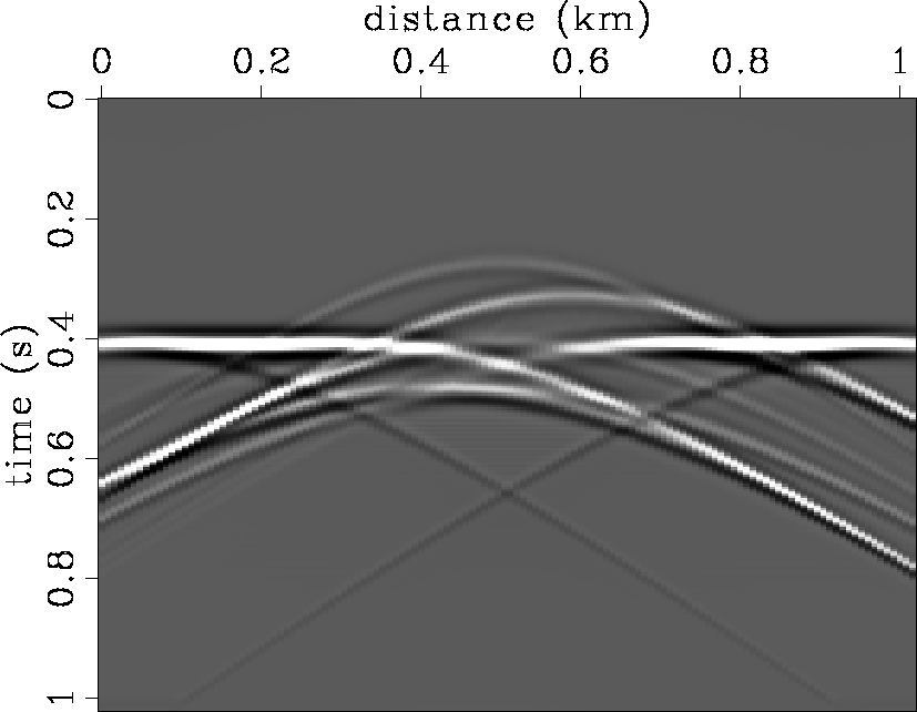 Figure 8 Synthetic data generated at the flat output datum, at an elevation of 210 m. Compare to Figures b through d.