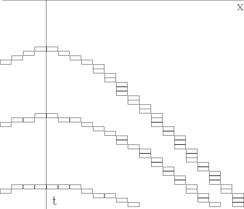 Figure 7 Figure borrowed from BEI to illustrate the reciprocity antialiasing. The flat parts of the hyperbolas require interpolation in time. The steep parts of the hyperbolas require interpolation in space. | ![]() |