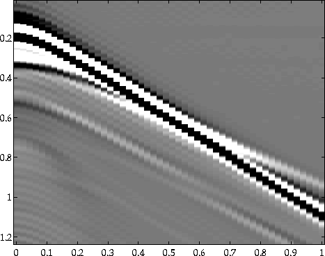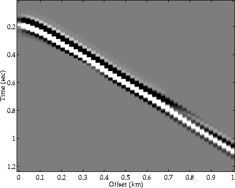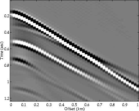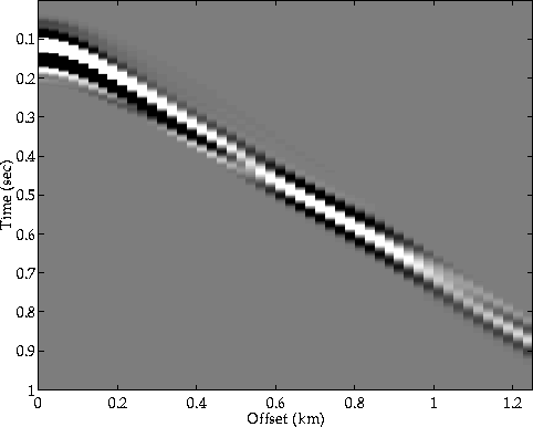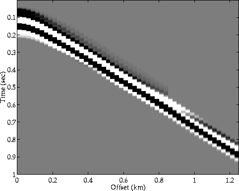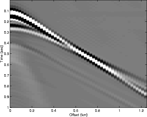 Prior to the inversion of the data for the near seafloor parameters, the arrivals of the wave that is being reflected off the second layer were muted out, leaving only the signals generated by the seafloor (Figures 13, 14, 15). Those signals were then transformed into the ($\omega - k$) domain, in which the reflection and AVO coefficients were determined.