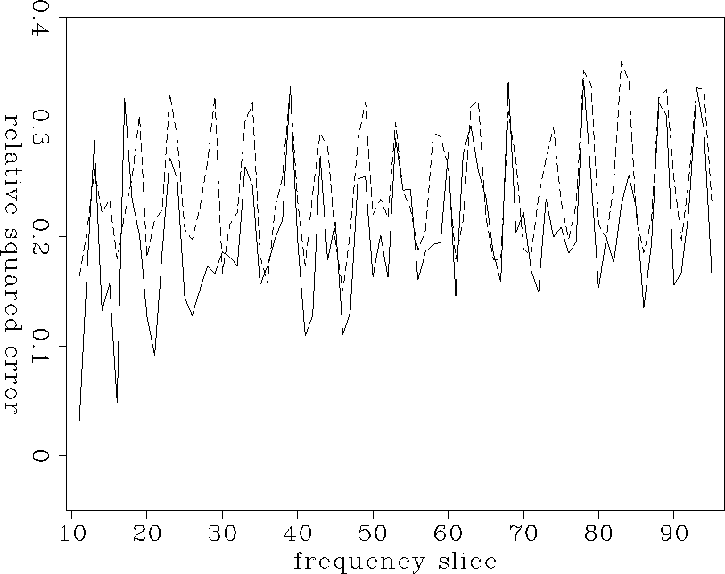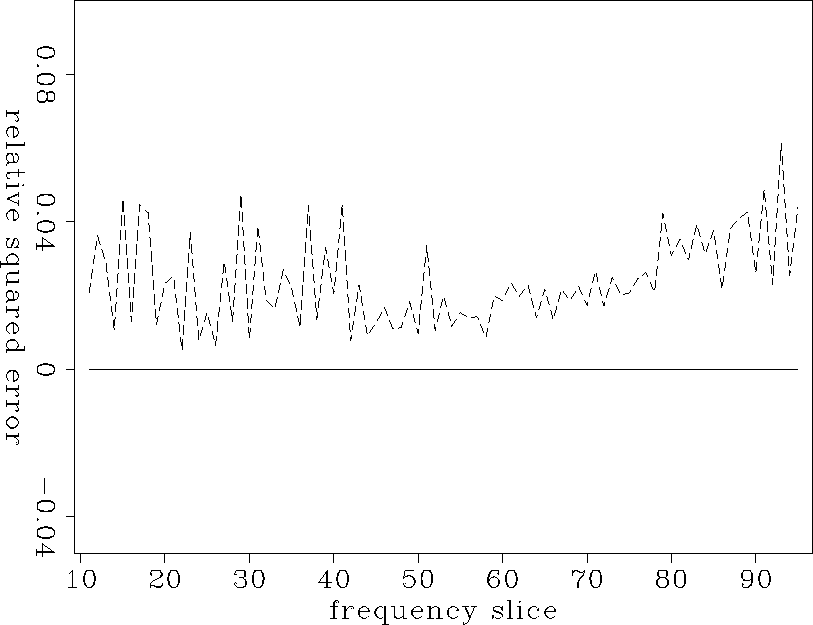 Figure 11 is the relative residual error for each frequency. It is interesting to notice that subsampled dataset is even more predictable than the oversampled dataset.