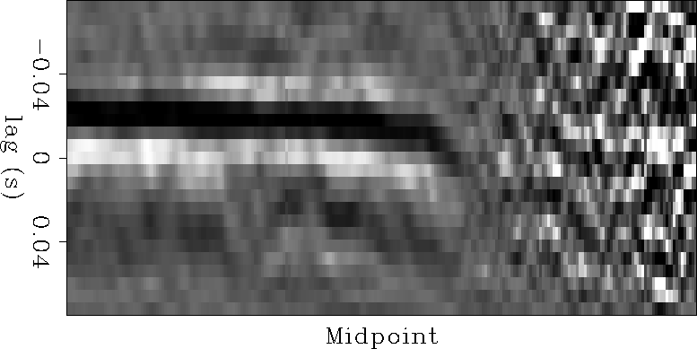 Figure 3 Amplitude spectra before (left) and after (right) matched-filtering. The solid line corresponds to the 1979 survey and the dashed line to the 1991 survey. | ![]() |