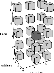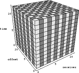 Figure 1 Representation of input data cube. Recorded traces are dark, traces to be interpolated are light. | ![]() |