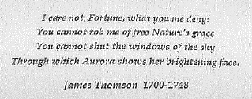 The quotation, found during an Internet search, originates from Thomson's The Castle of Indolence 1748 published less than half a year before his death. Some of the spelling and punctuation have been changed for the skylight. Appendix C gives the original text of that verse.