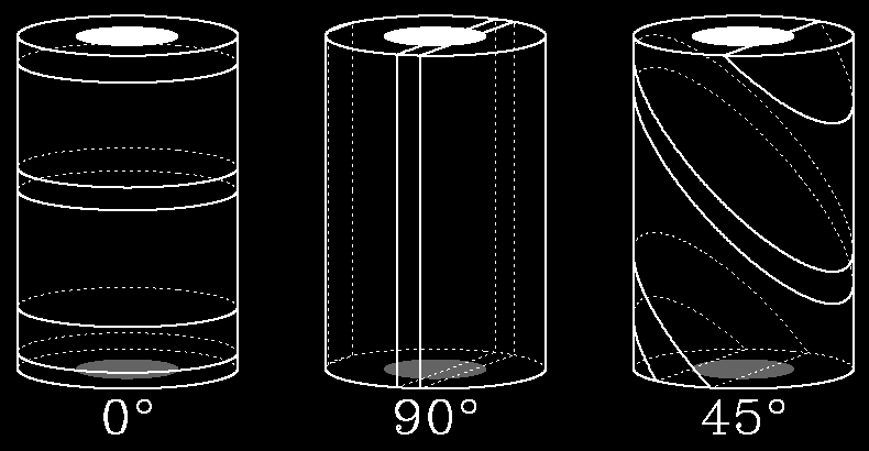 Figure 1: (GIF) (PS) Shale cores cut at 0, 90, and 45 degrees (perpendicular, parallel, and at a 45-degree angle to the layering respectively). The disks at the top and bottom of each core show the relative width of the P-wave transducers.