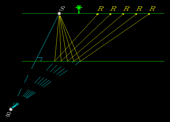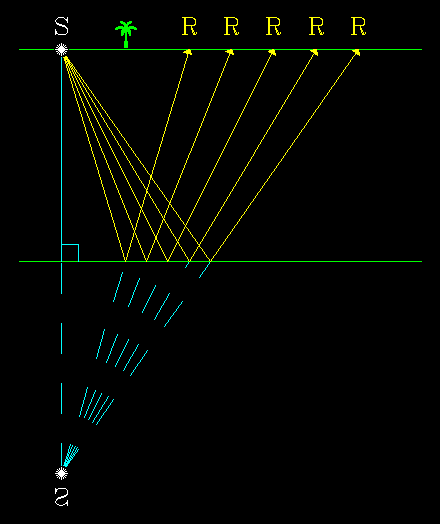 Another version of Figure 1 (GIF) (PS) , showing a seismic survey over an isotropic medium.