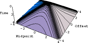 The lines of constant reflection angle $\gamma$ and variable dip angle $\alpha$ for a given position of a reflection (diffraction) point $\{z,\xi\}$ have the meaning of summation curves for angle-gather Kirchhoff migration. The whole range of such curves for all possible values of $\gamma$ covers the diffraction traveltime surface - ``Cheops' pyramid'' Claerbout (1985) in the $\{t,x,h\}$space of seismic reflection data. As pointed out by Fowler (1997), this condition is sufficient for proving the kinematic validity of the angle-gather approach. For comparison, Figure 2 shows the diffraction traveltime pyramid from a diffractor at 0.5 km depth. The pyramid is composed of common-offset summation curves of the conventional time migration. Figure 3 shows the same pyramid composed of constant-$\gamma$ curves of the angle-gather migration.