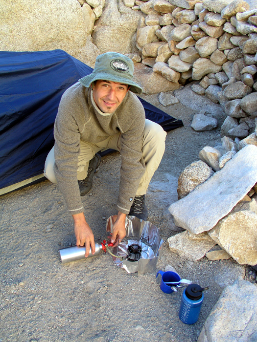 Olivier cooking breakfast. At that point, I was still feeling the effects of high altitude. The headache dissipated on our way back to the car, hours later. It was the longest headache ever, for both of us.
