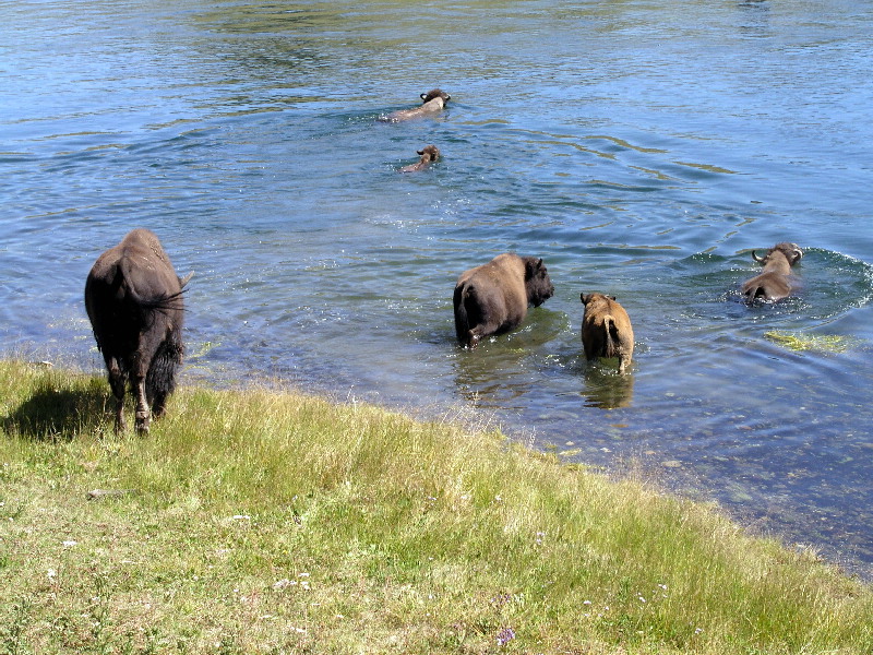 More bisons crossing the Yellowstone river at Hayden Valley.