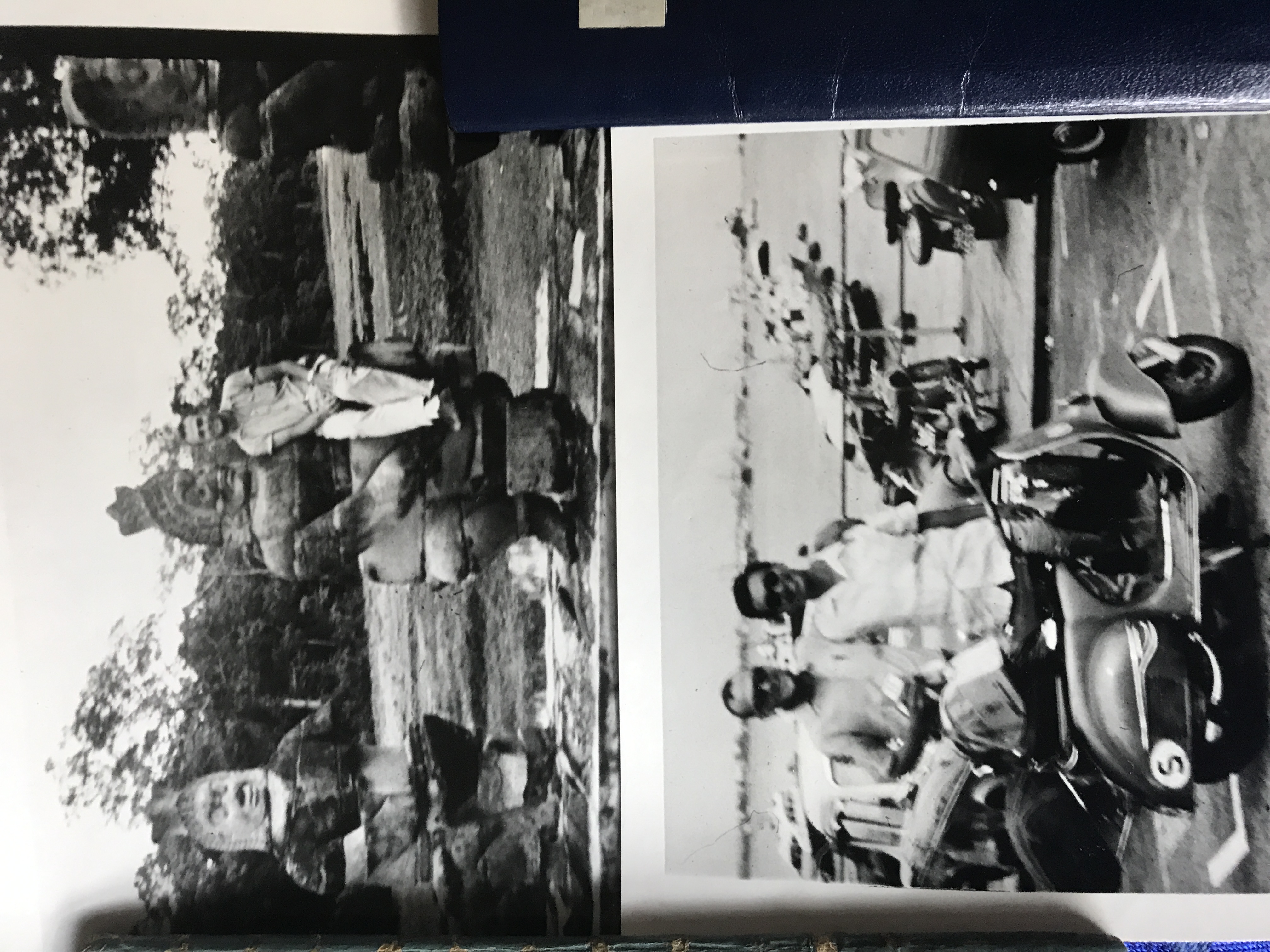 This photo top shows me sitting at the entrance of Angkor Wat in Thailand, bottom shows me with the guy I sold my scooter to in Singapore. After selling it to him and receiving the money (surprise) he loaned the scooter back to me the five days until my ship sailed. Color photo of my scooter, its purchaser and his friend.