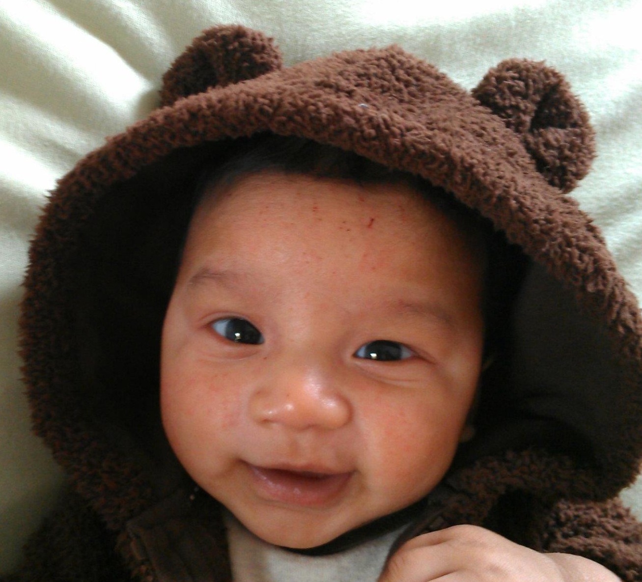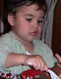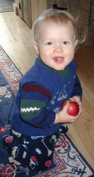 Jonas is a happy camper. Very busy keeping up with his siblings when riding his tricycle or pillow fighting in mommy's big bed. He is very proud of being a big boy -- that eats with a fork, sleeps in his own big bed, and goes potty by himself (most of the time). His favorite expression is "oh-oh" uttered at any mishap. His parent's favorite expression is "okay" pronounced with a very friendly upswing in his voice. Jonas suffers from several food allergies and asthma -- but is very good about taking precautions and medication -- "Okaaayyyy". He loves to take his bath in the evening especially when joined by his older siblings -- "Okaaayyy". And he finally is a great charmer generous with hugs and kisses.