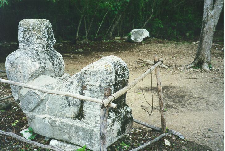 This is a statue of Chac, the rain god. You can see that he is laying on his back with his