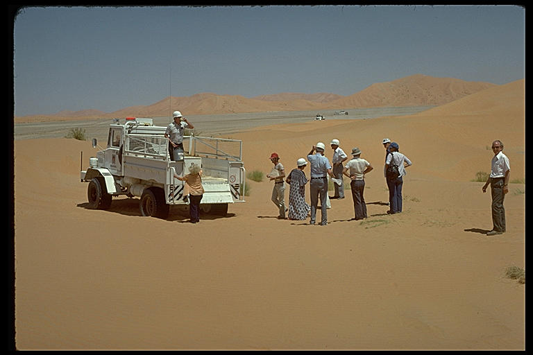 (Visitors assembling for ride to recording area)
