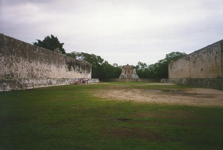 This is the Ballcourt. It has amazing acoustic properties - you can hear a whisper from one end to the other. The game played here was kind of a combination of soccer and basketball (you can see the hoops on the walls) and some scholars believe that the losers lost their heads. Others claim the winners lost their heads, because it was a more fitting sacrifice to the gods.