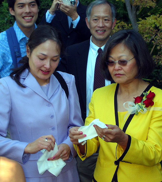 Kim and Fen went through many tissues during and after the ceremony. Kim's cousin Alan and Fen's brother Leisure in the background.
