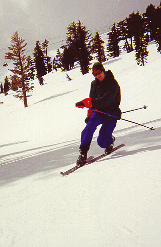 Morgan sloppily plying his way down the slope, not long before...