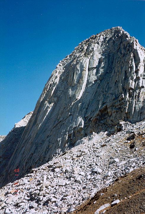 View to the southwest from Glacier Pass of the steep granite headwall at the head of Cliff Creek.