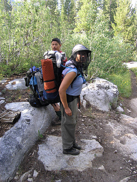 Robert and Kimberly breaking camp at Little Pete Meadow. A recurring theme: the bug net.
